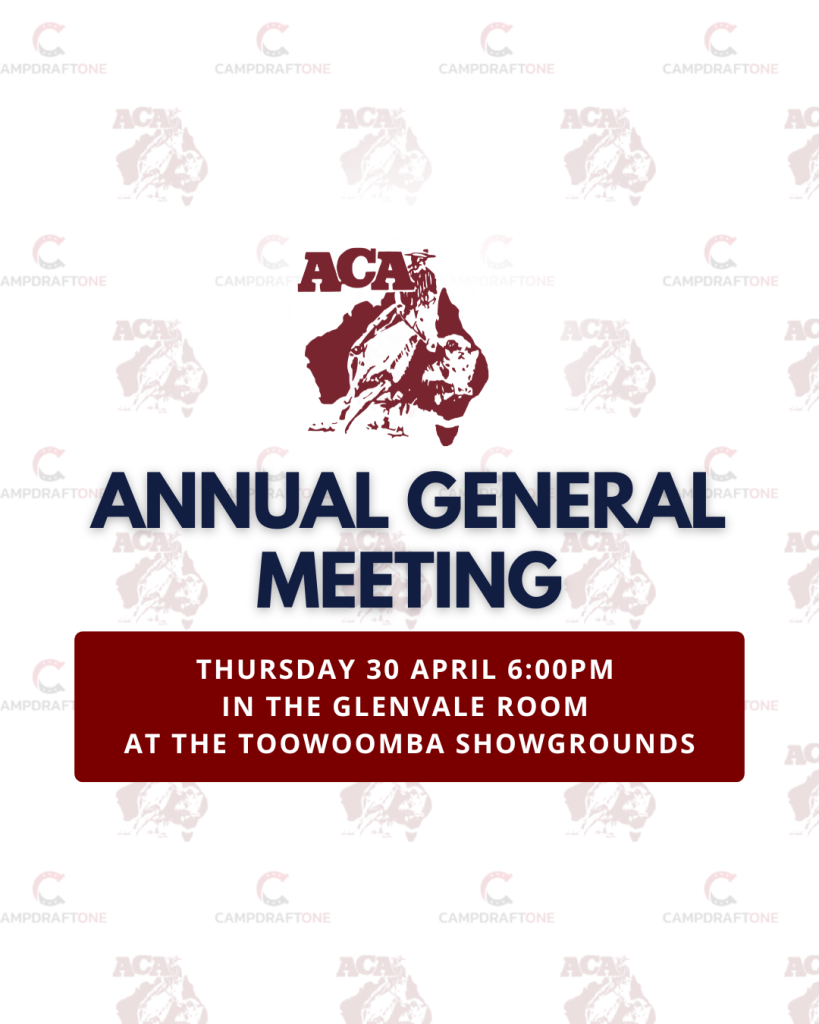 ACA Annual General meeting is being held at the Glenvale Room, Toowoomba Showgrounds at 6:00 pm on Thursday, 30th April 2026. All ACA members and non members are welcome to attend.